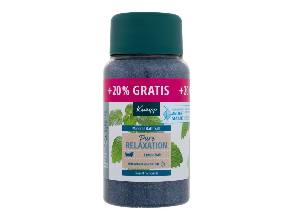 Kneipp Pure Relaxation vonios druska, 600g, skirta ramiam ir atpalaiduojančiam vakariniam ritualui. Ji pagaminta iš natūralios senovinės jūros druskos. Ši druska turi daug mineralų, kurie padeda atpalaiduoti kūną ir sumažinti įtampą. Formulė papildyta citrinų melisos eteriniais aliejais. Šis aromatas ramina, harmonizuoja ir suteikia jaukų poilsio pojūtį.