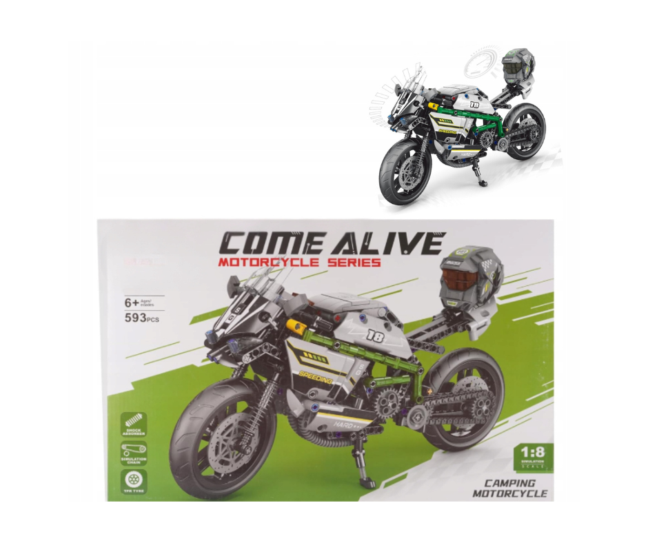 Atrask techninį meistriškumą su Zuanma konstruktorius ,,Camping Motorcycle” Motociklas – įspūdingu 593 detalių rinkiniu, kuris leidžia sukonstruoti itin realistišką motociklą. Kiekviena detalė kruopščiai apgalvota, o surinktas modelis pasižymi judančiais ratais, veikiančia grandine ir sportiniu dizainu, primenančiu tikrą gatvės lenktyninį motociklą.
